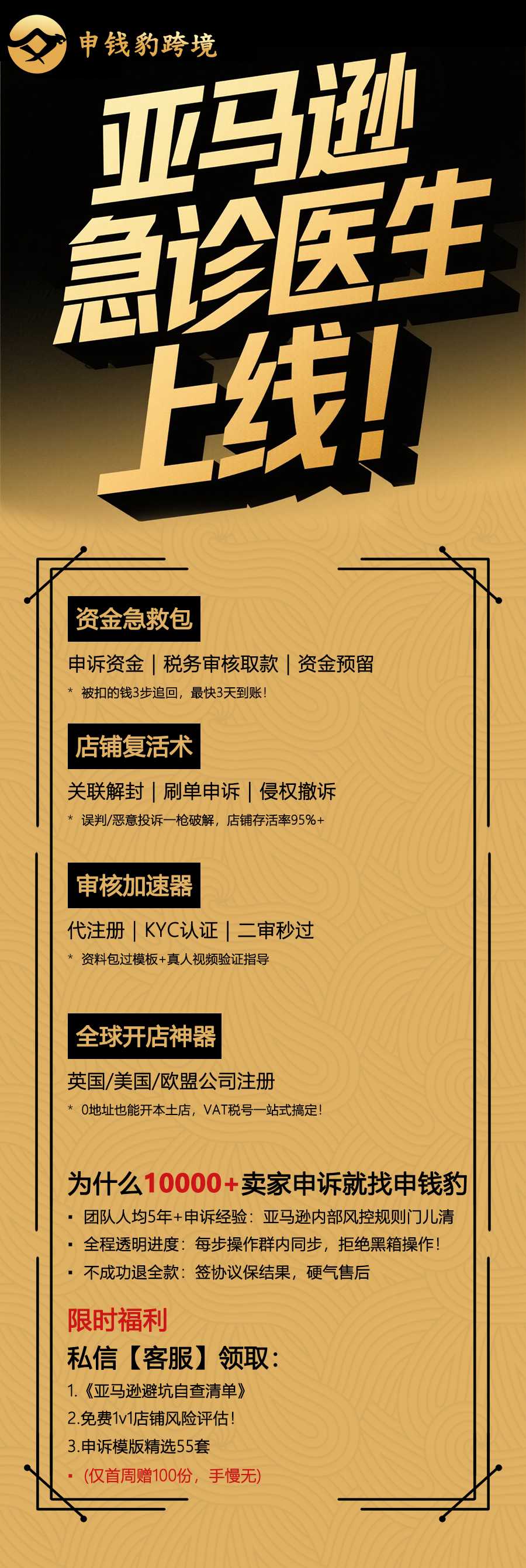 厦门申钱豹跨境电商服务有限公司,成立于2018年,专业解决亚马逊申诉问题,帮助10000+卖家成功解决店铺问题,致力于保护跨境卖家店铺安全,保护资金安全。